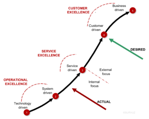 The first level in the USM Value Maturity Model is Technology-driven. At level 1, the provider’s attention is focused on delivering goods or actions. Their marketing demonstrates their focus: “we have the best product – it’s better that the product of…