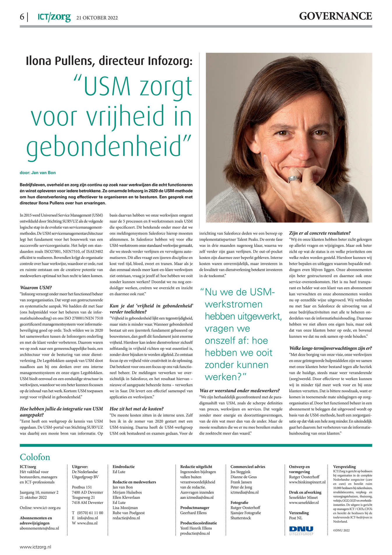 Lees ook ICT/Magazine voor het interview "USM zorgt voor vrijheid in gebondenheid" met Ilona Pullens, directeur Infozorg, over de invoering van USM (download of bekijk hier online).