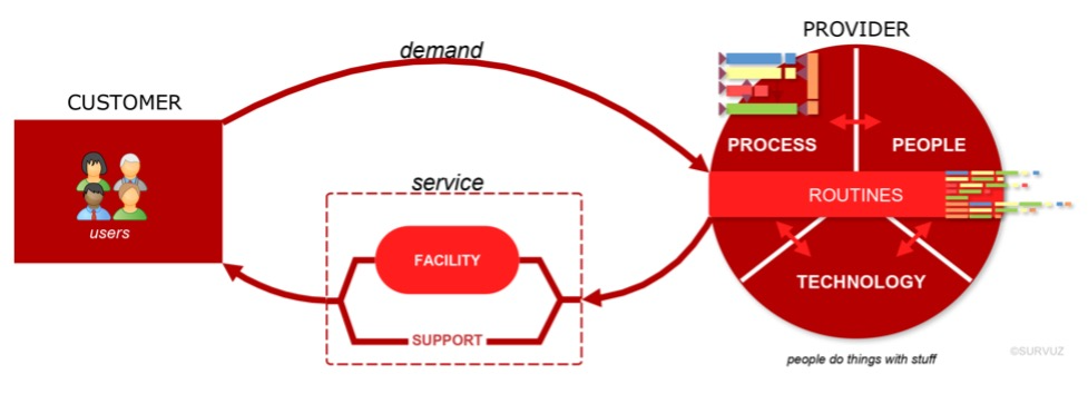 De toevoeging van Jan van Bon (lead architect Stichting SURVUZ, beheerder van de USM-methode) aan deze werkgroep was uiteindelijk reden voor een van de meest fundamentele herschikkingen. Na flink wat discussie en inlezen besloot de werkgroep dat Overheidsdienstverlening ook 'gewoon' dienstverlening is en dat de inzichten vanuit USM dus onverkort van toepassing waren. Goede organisatie en besturing van de dienstverlening is een noodzakelijke voorwaarde voor goede overheidsdiensten.