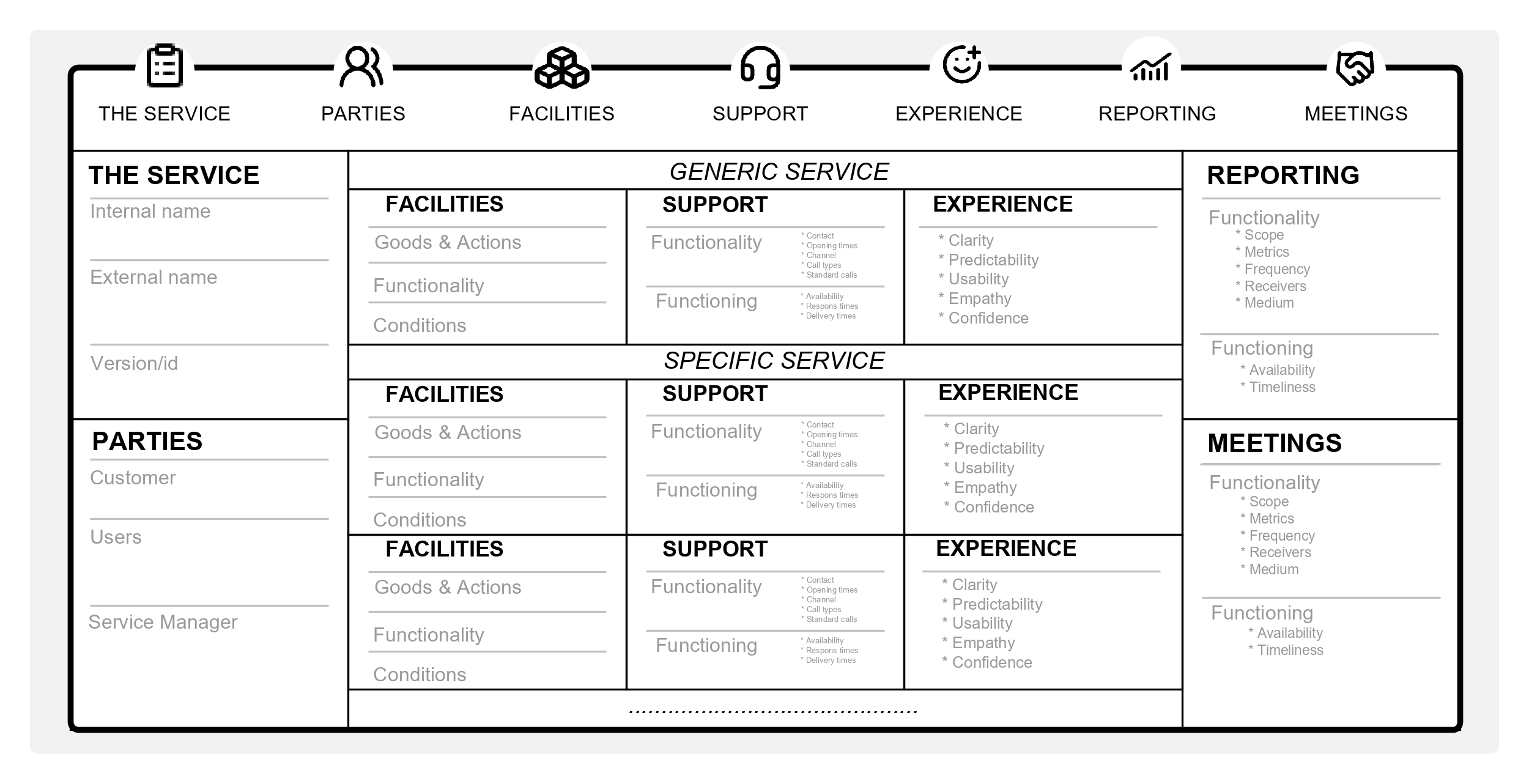 The Service Model Canvas can be used to specify a single service of one of more facilities.